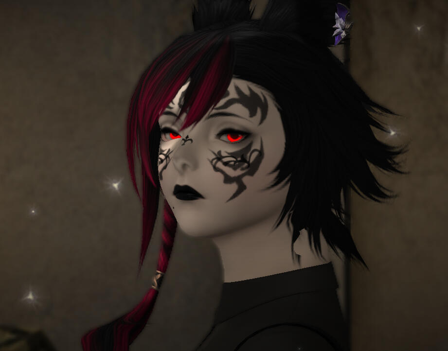 In the Far East in Dalmasca... Kali Arkona was born as a Veena Viera, though her childhood remains unknown or not documented...When Lady Kali Windfall was the age of 22, The Garlean Emprie. has invaded her homeland and took her captive, they have assassinated her own family and friends at that time. Therefore Kali was fallen uncounscious and she does not know what is going on... Therefore, something has just brainwashed Kali's mind and she was trained as a Warrior of the Garlean Empire.At wars, Kali was proven that she has the brutality in her strength, killing guards in the western part of Hydaelyn, Eorzea. Kali was slaughtering many soldiers and innocent people that she has regretted for her life. So they have called her, "The Lady Death Machine."As the Veena trained harder and became more viscious, she was sent to Bluefog in Northern Thanalan to invade Central Thanalan, though The Soldiers of the Immortal Flames had to fight this Enraged Veena alone, Kali has not succeeded and one soldier had to make a vertical slash against Kali's eye. The sword went into her skull deeply which Kali had screamed on top of her lungs and then.... She has vanished somewhere....In the small village near Bluefog, the Veena woke up and she did not remember things, though she visioned good and bad things. The Good vision she has saw is her living with her dream girl, a tall Duskwright Elzen with pink flowing hair, she was hugging the Veena with comfort and she felt happy and they would be giants, but it was a dream. The bad visions that she is possessed by the voidsent and she grows big and plans on destroying the world itself.Okay, lets get on with the story. There was a Mi'Qote named Eldrith Maesphisto. Therefore, she decided to live with her as Eldrith stated in a codition, she wants Kali to become a Black Mage. The Forbidden magics to protect herself and to protect others. Kali then approves with that condition... The training and using Black Magic is overwhelming in months, though she has learned more about Nald'Thal and Thaumaturgy. Kali has learned the elements of Fire, Thunder, Ice as well with the Astral and Umbral Knowledge. Kali has mastered The Black Magic and she is still continuing to go beyond her new magics, even taking corruption away from another person who was possessed. To gain more power, Kali has to feast on the corrupted entities by using her forbidden magics.Two years later, Kali was assisting Eldrith with books and reagents, as Eldrith was going to the front of the yard to tend the plants in Bluefog, there was an assassin who created noise which alerted Kali. She rushed through the front door and the assassin grabbed Eldrith and he slit her own throat, which caused Kali to explode in anger and shadows, her shadow magic begins to upheavel herself and she attempts to kill the Garlean Assassin, but he escaped.